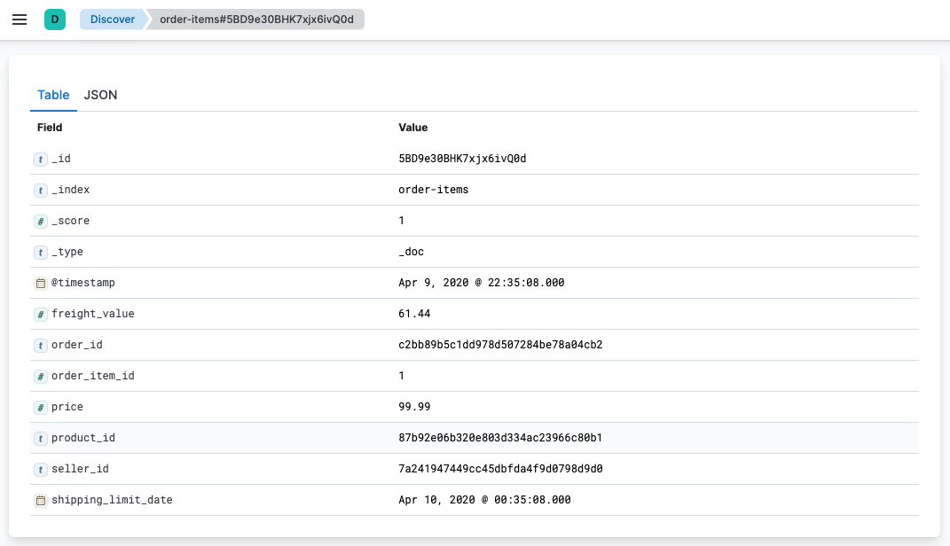 Document details in Kibana Discover