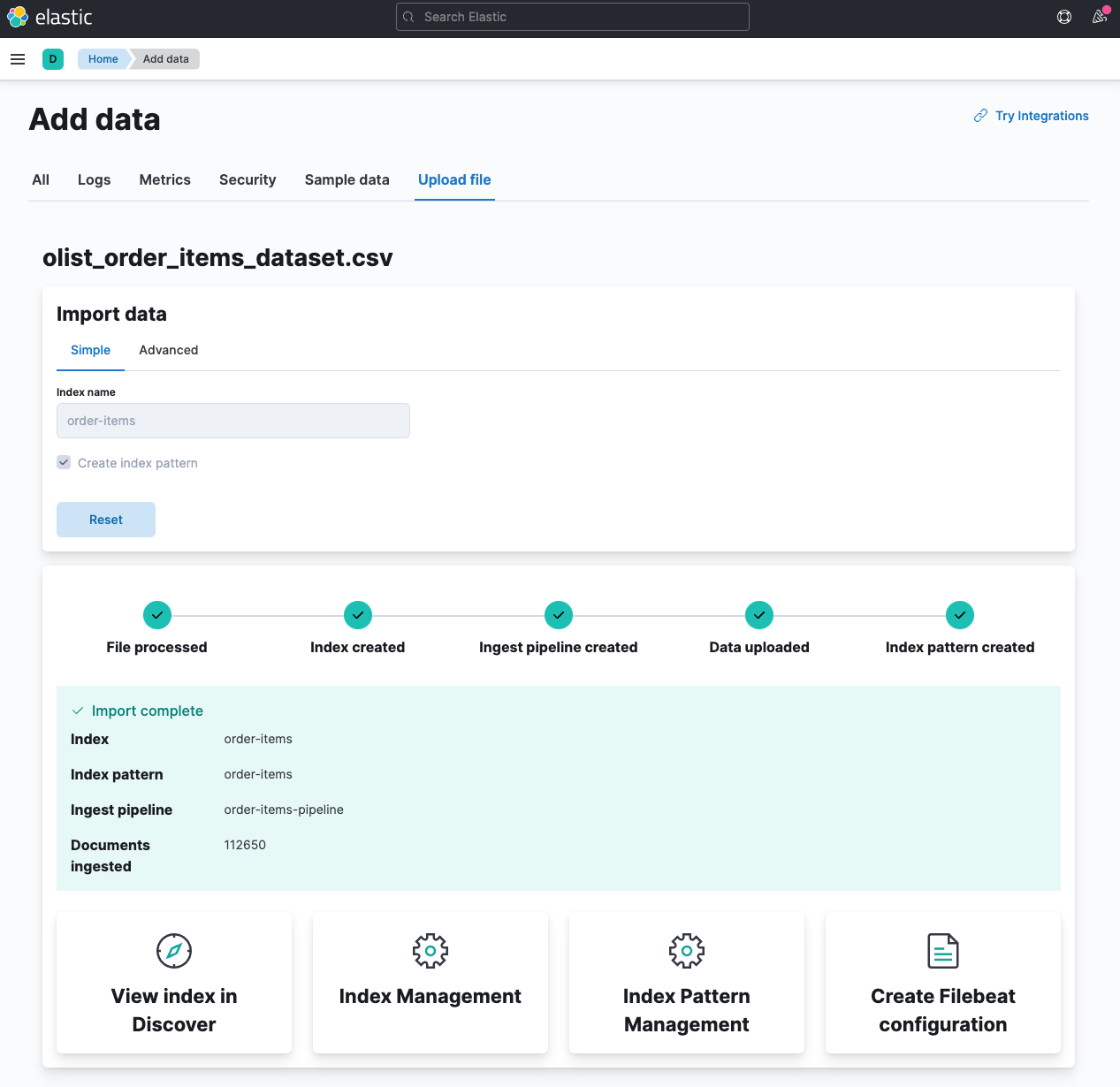 Just a reminder to not uncheck the Create Index Pattern box, as this can