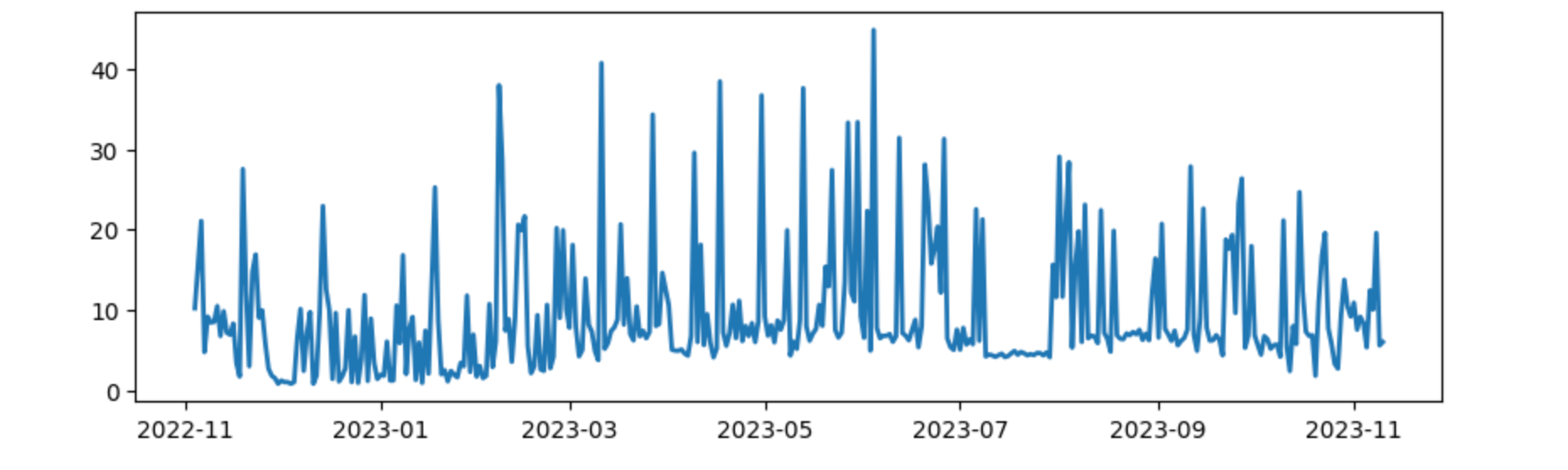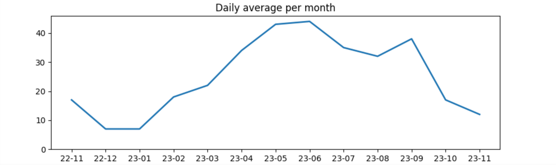 Adding some windowing, by taking the next and previous day into the average calculation smoothes the graph out a little like this: