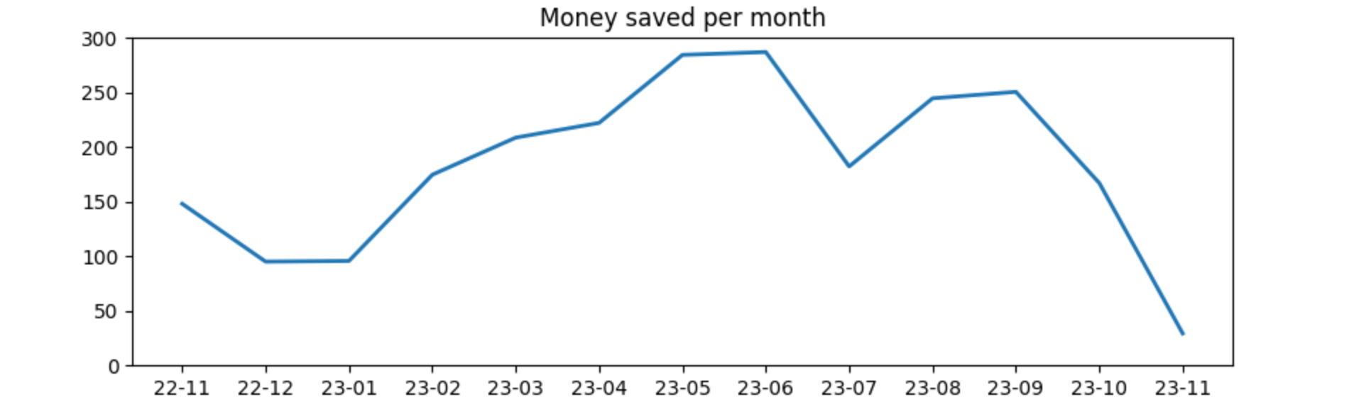ax.set_title("Money saved per month".format(sum))