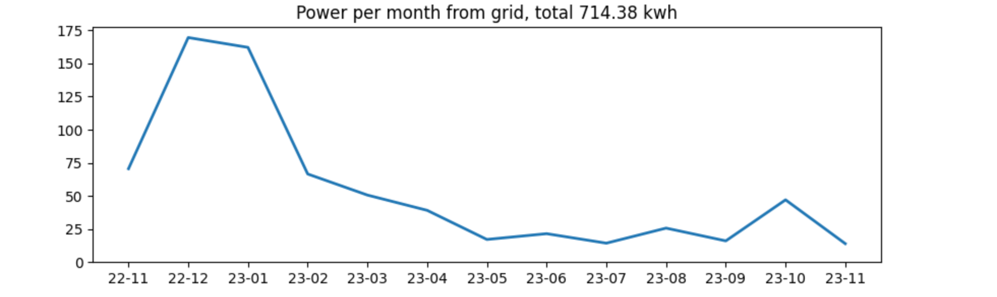 ax.set_title("Power per month from grid, total {:.2f} kwh".format(sum))