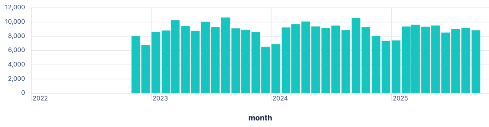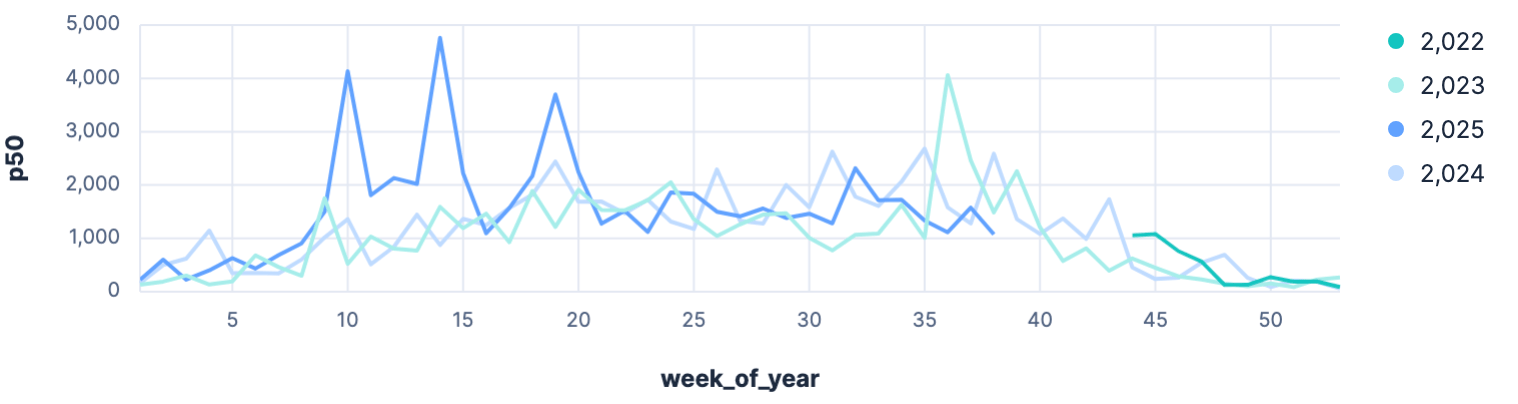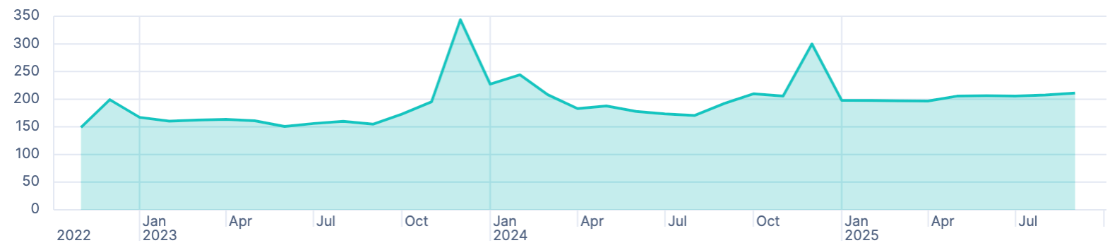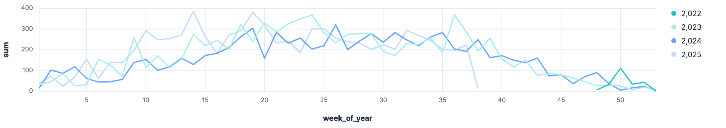 As only 2023 and 2024 are full years, those are the only trustful numbers, which are relatively near to each other and make sense.
