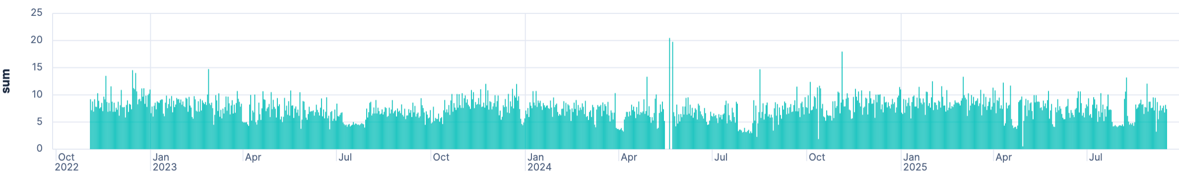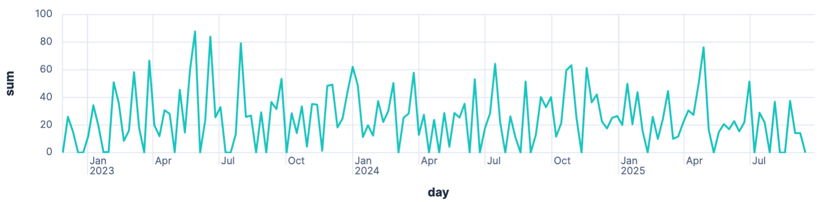 | STATS battery_full = SUM(battery_full) BY date = DATE_TRUNC(1 day, date)