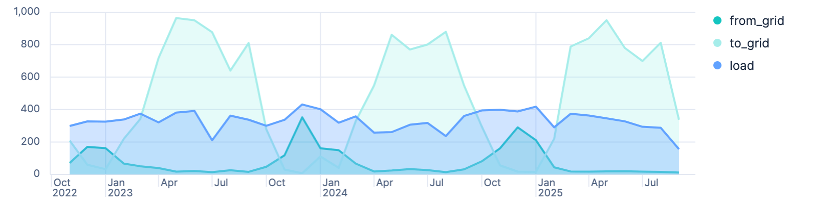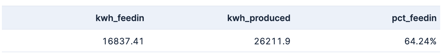So around 64% of the produced power are pushed into the grid. 10000 kw/h are consumed ourselves. We will dive later on better metrics for checking load.