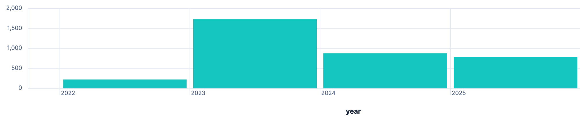 However, when trying to display this in a bar chart I always got the full timestamp displayed, which took to much space, so I reduced it to the year via the query, as I could not find a formatting option.