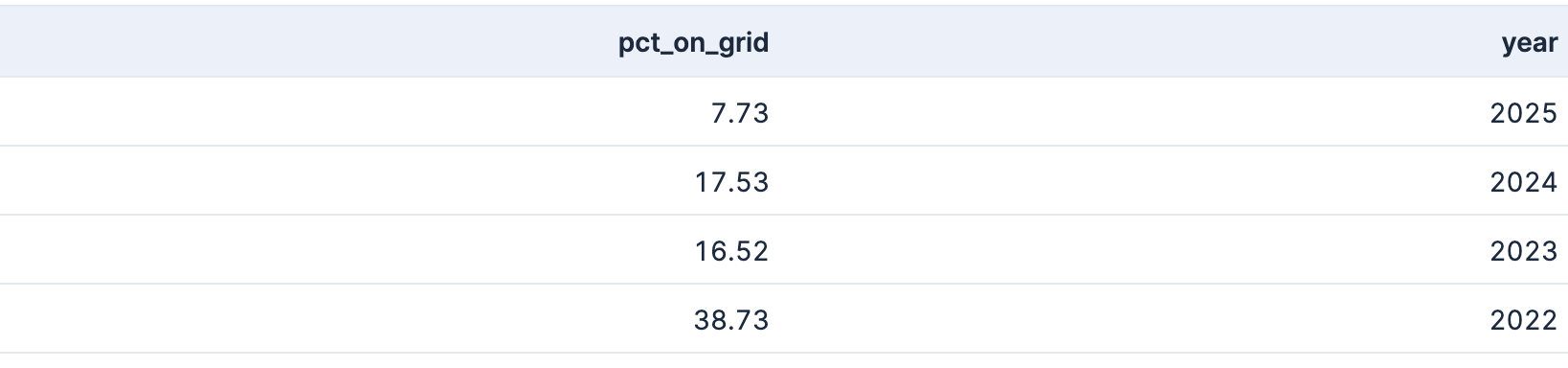 | STATS pct_on_grid = ROUND(